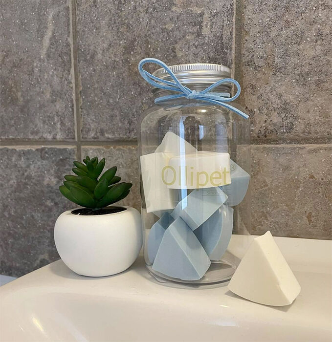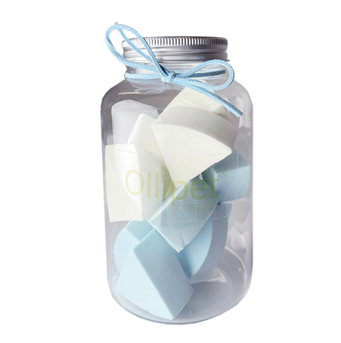 Leveres i sød dåse med 12 svampe i hvide og lyseblå farver.