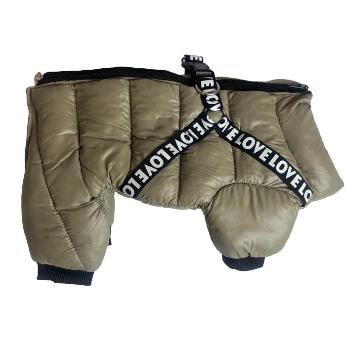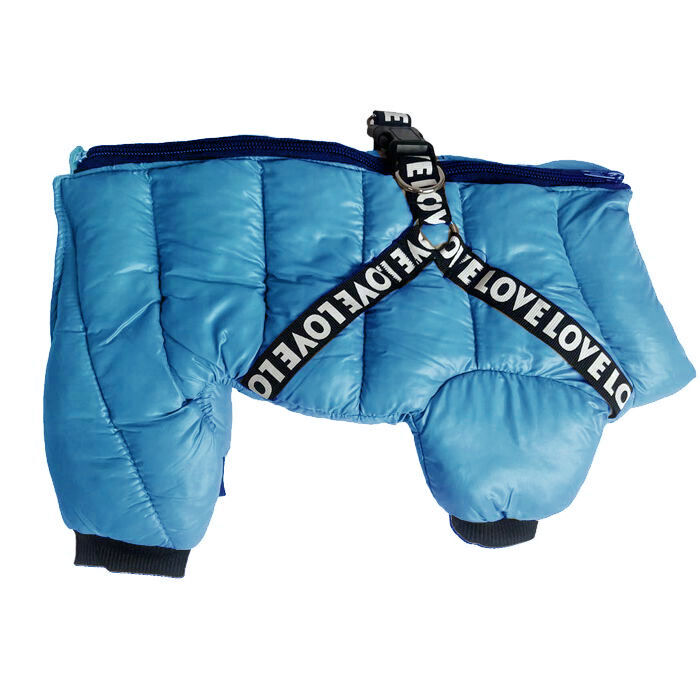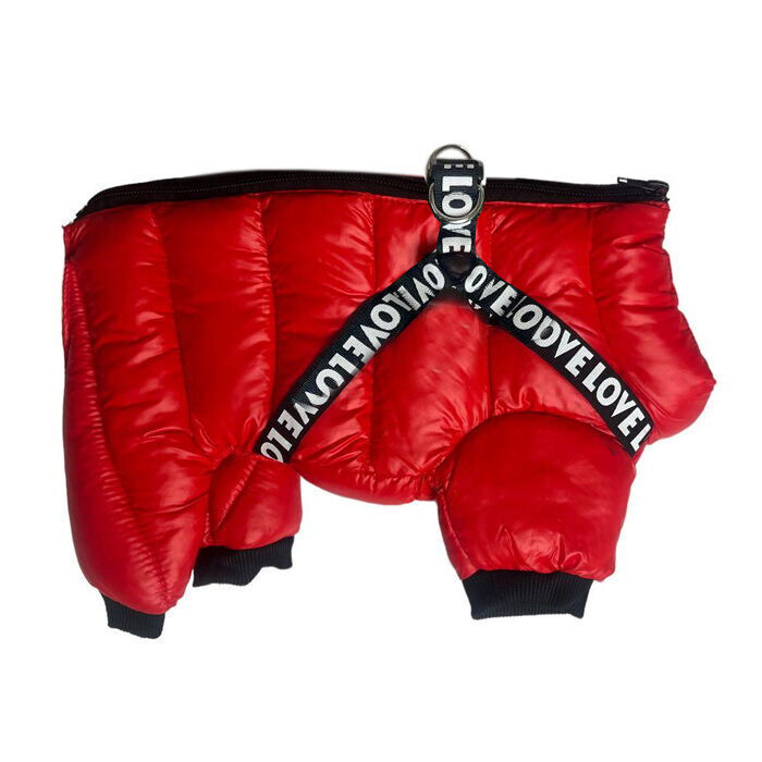 Ollipet LOVE Flyverdragt med integreret sele. Hold hunden varm med denne brugervenlige kombination af flyverdragt og sele.