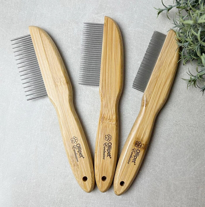 Her har Ollipet fremstillet 3 fantastiske groomingkamme i bambus, med hvert deres formål.