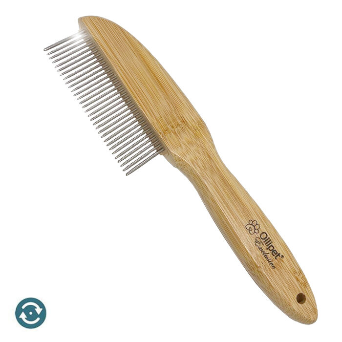 Ollipet Exclusive rullekam med roterende tænder af rustfrit stål og med bambusgreb - Til perfekt pelspleje - Vælg mellem 3 varianter