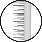 En mere fyldestgørende kam, der fjerner løse pelshår og sikre at der ikke gemmer sig filtre i pelsen. Anvendes til de fleste pelstyper. Er også meget velegnet til udredning af hunde med underuld. |
