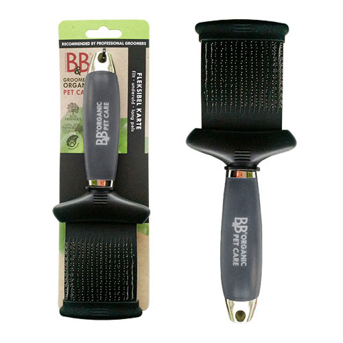 Denne unikke børste har pigge på begge sider. Piggene har et lille knæk der gør karten yderst effektiv til udredning af filtre i pelsen.