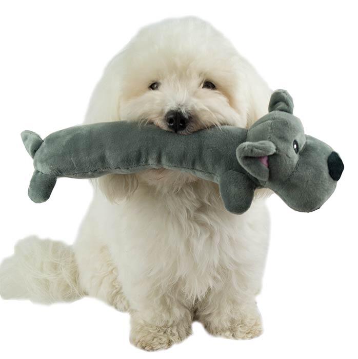 Sjov, lang plyshund i velour til legeglade mindre hunde. Den bløde hundebamse er alletiders legetøj - også for hvalpe! Den vejer nemlig kun ca. 55g.