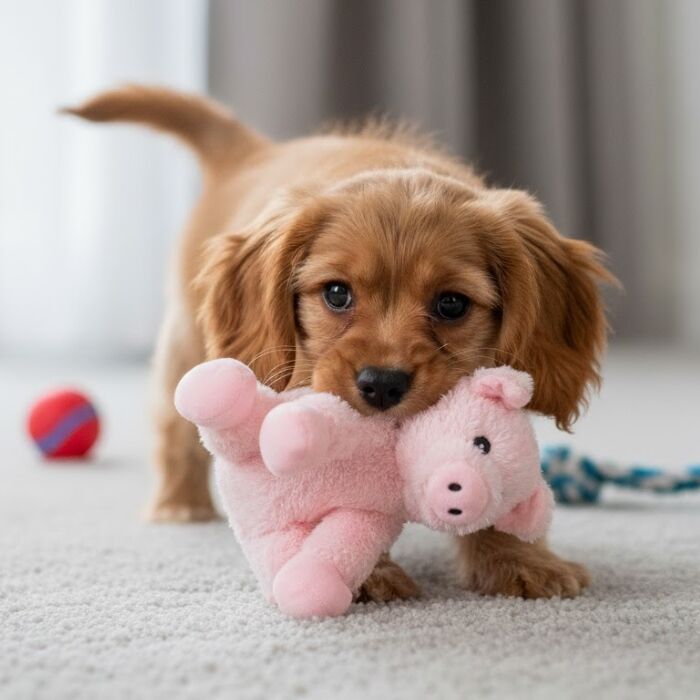 Sødt og sjovt hundelegetøj frmstillet i blødt plys