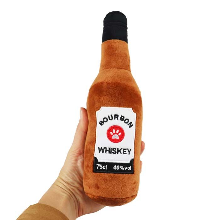 Skal du holde fest sammen med din hund, så kan den sjove Whiskey Bourbon Plysflaske være lige det du søger.