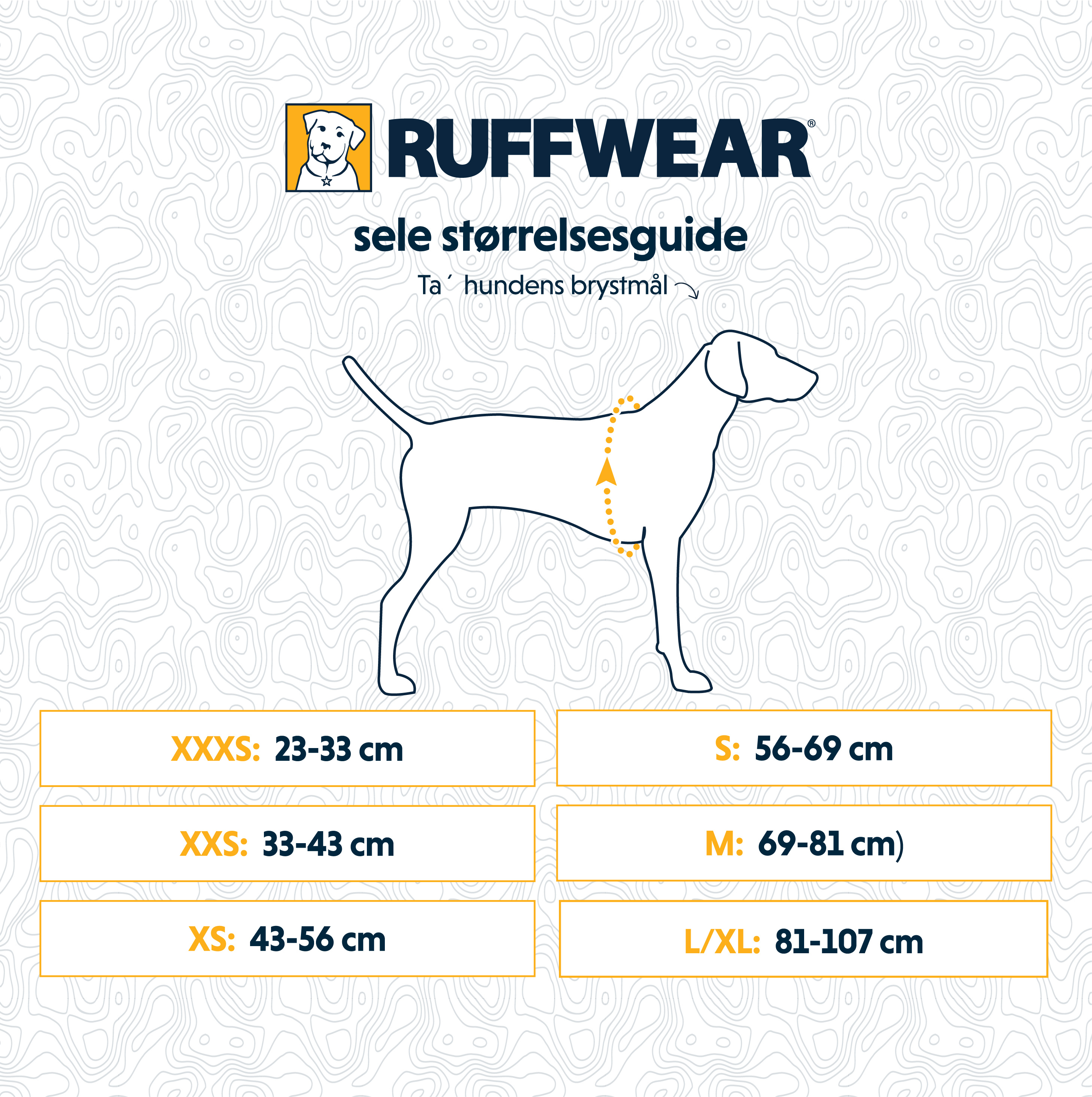Ruffwear har gjort det nemt for dig som kunde. Alle deres seler er lavet med samme størrelses mål. Det vil sige, bruger du en str. Medium i Ruffwear Front Range Harness, skal du med meget stor sandsynlighed bruge den samme størrelse i f.eks. Hi & Light selen.