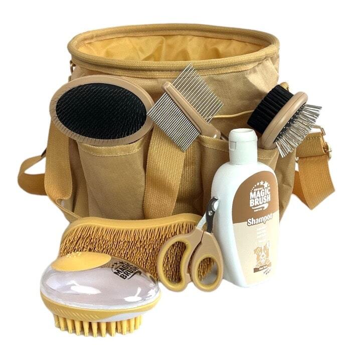 - Inkluderer børster, kam, shampoo, negleklippere og en groomingtaske