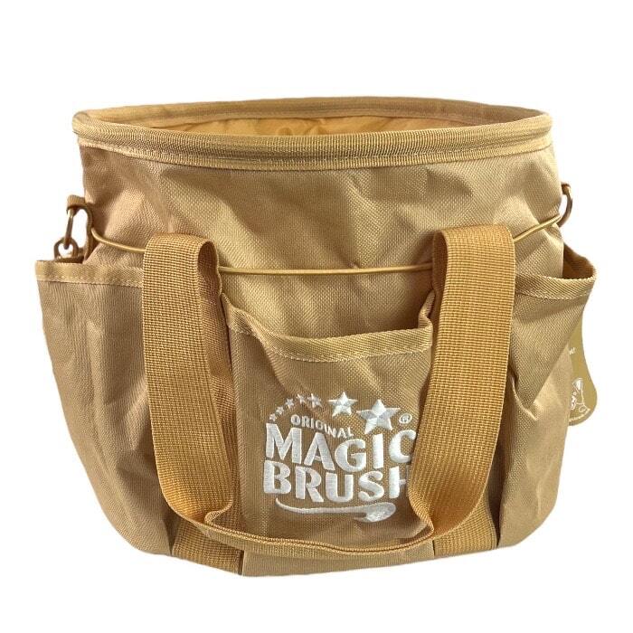 8. MagicBrush Groomingtaske, der tilbyder masser af opbevaringsplads til dine plejeprodukter. Den gyldenfarvede taske er praktisk, let at rengøre og har en aftagelig skulderrem for nem transport.