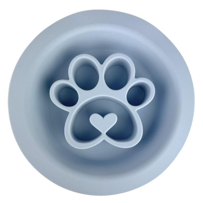 Med Ollipet Sweet Paw 2-i-1 slikkeskål får du en elegant og stilfuld løsning til din hunds måltider. Perfekt til de hunde, der ofte sluger maden lidt for hurtigt. Slikkeskålen kan bruges til både tørfoder og vådfoder, som kan smøres eller fordeles i bunden for at give din hund en god aktivitet, der samtidig stimulerer den mentalt. Slikkeskålen har et smart mønster på bagsiden, der fungerer som en slikkemåtte, hvilket gør den ideel til flydende snacks eller blød mad. Når man bruger den som slikkemåtte, har skålen en let sugekop-effekt, så den står fast, mens din hund slikker løs. Skålen kommer i en smuk, gammelrosa eller blå/grå farve, der er både stilren og praktisk. I bunden af skålen er en stor pote, som forhindre at hunden ikke sluger maden. På bagsiden er et mindre mønster af hundehoveder og små kødben.