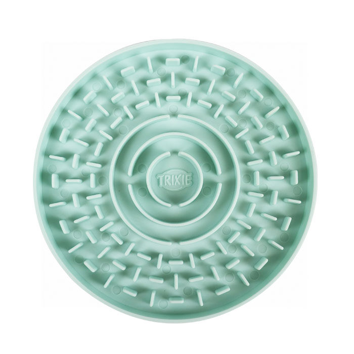 Nu kan du aktivere din hvalp med denne Junior Slikkeplade fra Trixie. Slikkepladen er rund og har et labyrintlignende udseende. Her kan du lægge godbidder i eller smøre med vådpoder, leverpostej eller lignende, som din hvalp så kan slikke af. Det er et super godt produkt til at aktivere og stimulere hvalpen samt hvis den har en tendens til at spise for hurtigt og sluger maden - så kan man med fordel bruge slikkepladen som en slags foderskål. Udfordringen for hvalpen ligger nemlig i, at den skal arbejde for at få maden op. Det betyder altså også, at hvalpen er beskæftiget i noget tid, før pladen er slikket helt ren.