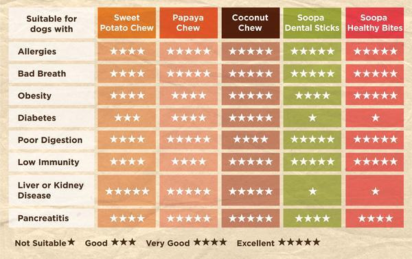 Hvis du er i tvivl om, hvilket produkt du bør vælge, kan du bruge SOOPA Healthy Star Chart, så du er sikker på, at du vælger den snack, der passer bedst til netop din hund.