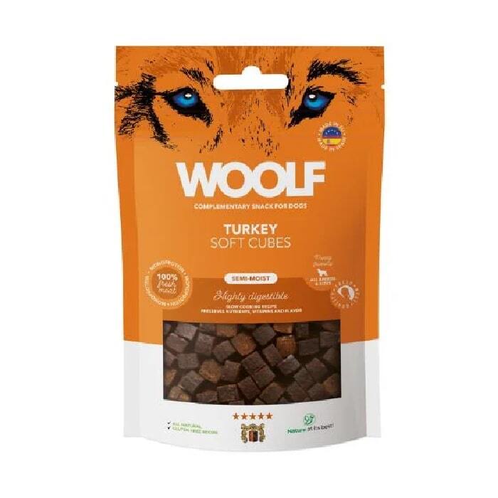 WOOLF godbidderne med kalkun er en blød og lækker delikatesse, der er velegnet til alle slags hunde. Om det er en stor, lille, gammel eller en hvalp, så er Wolf godbidderne en lækker snack, du kan forkæle din firbenede ven med.