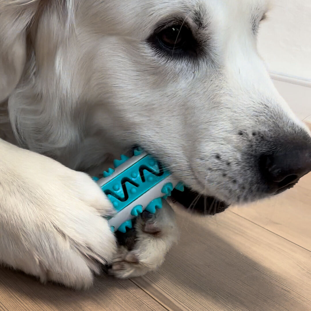 Legetøjet er derfor velegnet til hunde, som ikke er glade for at få børstet tænder på almindelig vis.