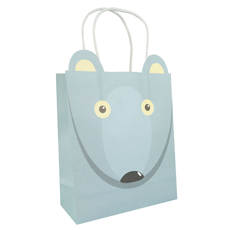 Ultra sød papirs-gavepose med hundehoved med ører og bærehank.