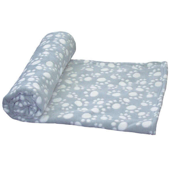 Det fine hundetæppe er i en smuk, blågrå farve med hvide poter, der giver tæppet et nordisk og moderne look.