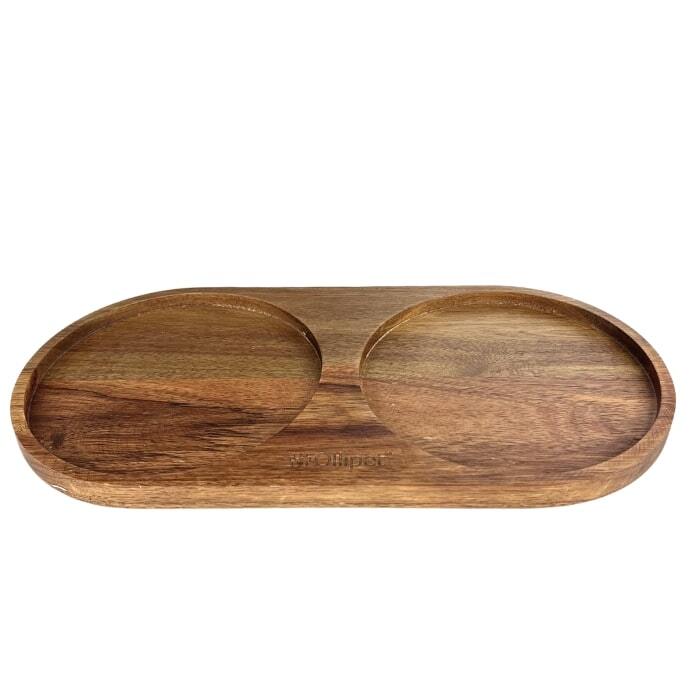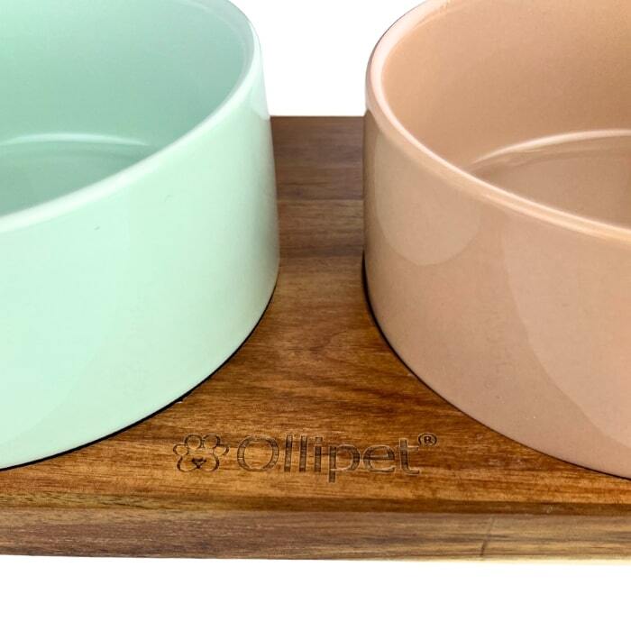 Ollipet holder til madskåle i akacietræ | dobbelt produktinformation