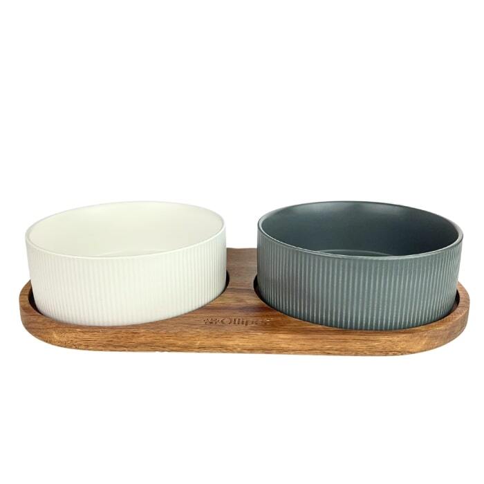 Denne elegante holder til hundeskåle fra Ollipet tilføjer et stilfuldt præg til dit hjem. Designet stabiliserer skålene og reducerer risikoen for spild af mad og vand på gulvet. Du kan nemt placere to keramikskåle på holderen og skabe et unikt udtryk, der passer ind i enhver indretning. Fremstillet i slidstærkt akacietræ, er denne holder ikke kun smuk, men også bæredygtig. Akacietræ er et miljøvenligt materiale, der sikrer, at din skåleholder holder i mange år. Den er designet til at rumme skåle med diametre på 13 cm og 15,5 cm, så både mad- og drikkeskålen kan samles på ét sted.
