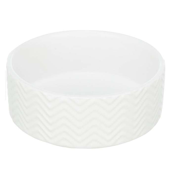 Flot, enkel og stilet keramik skål fra Trixie. Den passer ind i et hvert hjem, og giver din hund en diskret, men dog stilet foderplads i huset. Skålene er lavet i keramik, med et flot mat look og et fint riflet mønster på siderne. Et tidsløst design, der passer til de fleste.
