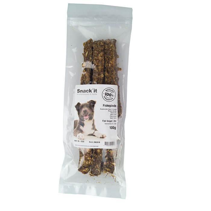 Lækre fiskepinde af torsk og laks som, er fanget i Euorpa din hund kan gumle på.