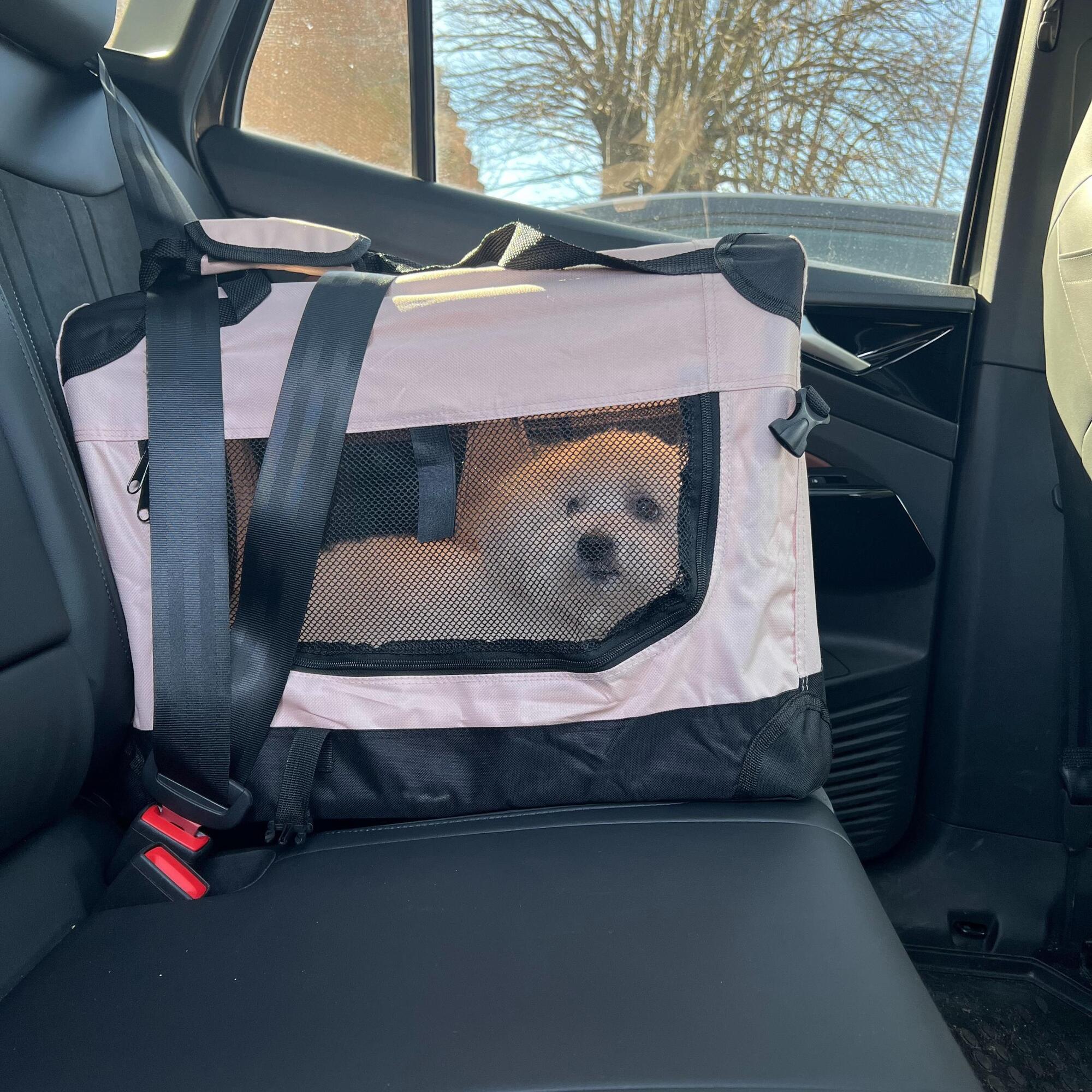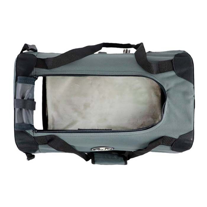 Denne transporttaske er skabt til at være praktisk og holdbar. Med sit kraftige kanvasmateriale, indbyggede stålramme og et lækkert kunstlammeskindstæppe, tilbyder tasken både komfort og stabilitet. Tasken kan bruges i bilen, toget eller bussen og fungerer også som et hyggeligt sovested derhjemme. Det er en alsidig løsning, der kombinerer transport og komfort.