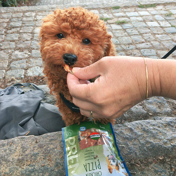 Når resten af familien får pizza, kan din hund nu være med! Med sin helt egen kyllingepizza fra Trixie Premio. Kombinationen af lækker, sej kylling og smagfuld kyllingelever er der sikret en godbid, der får tænderne til at løbe i vand. Disse godbidder er formet som små pizzaslices (trekantede), så de virkelig ligner rigtig pizza. Her undgår du dog dejen og det høje saltindhold, og får i stedet en hundesnack der passer lige til din hund.