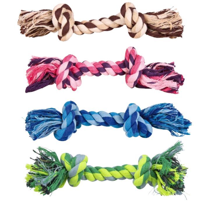 Torvet er velegnet til træklege eller ren tyggefornøjelse. Det er fremstillet i blødt bomuld i blandede friske farver, som er nænsomt ved hundens tænder, når den tygger løs på det. Samtidig har rebet en tandrensende effekt, så mens din hund leger med det, vil dens bisser blive renset.