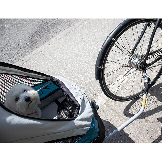 Der er flere smarte detaljer på din Petstro Aventura Medium cykeltrailer / hundeudstillingsvogn. En rigtig praktisk ting er det, at den i et snuptag og uden brug af værktøj kan adskilles og sammenklappes, så den uden problemer kan medtages i selv mindre personbiler.